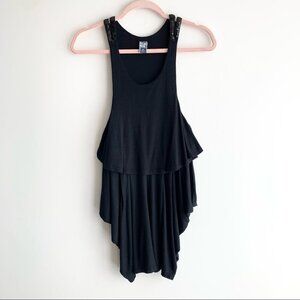 Free People Tank Top Y2K 00s Embellished Sparkle Shoulder Draped Black Size S