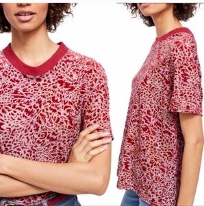 Free People Teddy Burnout Velvet Red T Shirt Small Xs Small