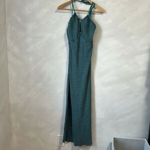 Free People Terra maxi dress ribbed halter blue stripe beach coverup size L