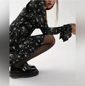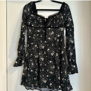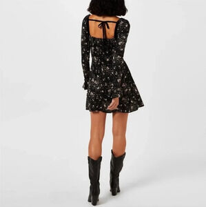 Free People Tess Floral Black Viscose Long Sleeve Mini Dress size S