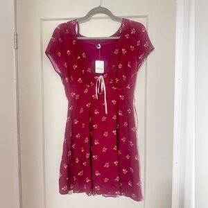 Free People Tie-Detail Mini Tea Dress in Raspberry - Size S
