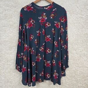 Free People Top Small Blue Flower Swing Tunic Keyhole Oversized Boho Beach Dress