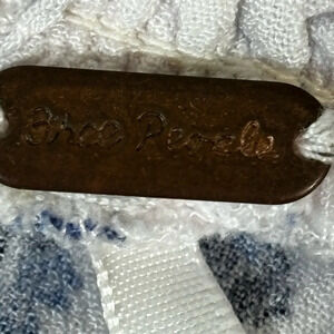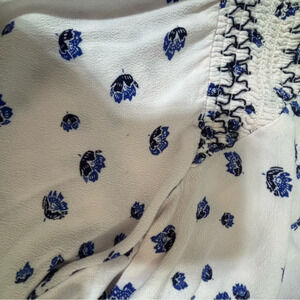 Free People Top Women Small White Blue Smocked Long Sleeve Blouse Romantic Cute