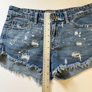 Free People Urban Outfitters Paint Splatter Denim Blue Jean Shorts Frayed Sz 25