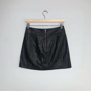 Free People Vegan Leather Mini Skirt Women's Size 2 US Black Zipper Faux Leather