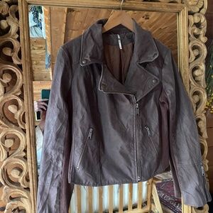 Only worn once! Size medium Free People vegan FAUX leather/suede moto jacket in dusty lilac.