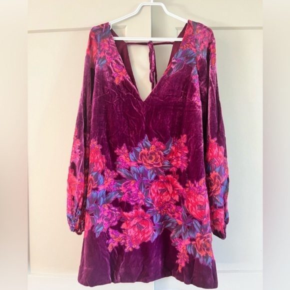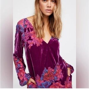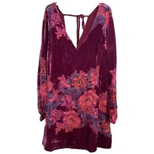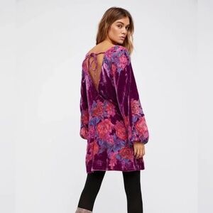 Free People Velvet Floral Mini Dress Long Sleeve Mesha Pink