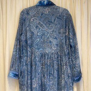 Boho Vibes! FreePeople velvet-trim smocked top in a dreamy blue paisley. Luxe velvet collar + cuffs, textured smocking, and FP's signature oversized fit. TaggedXS but fits XS-M.