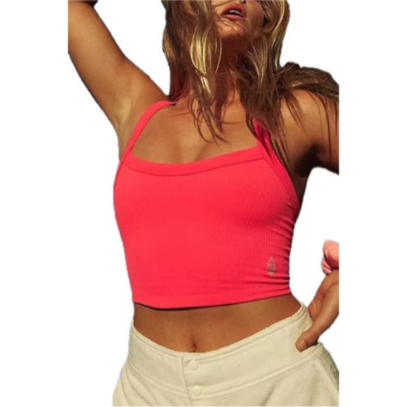 Free People Vibrant Coral/Pink Cropped Tank Top