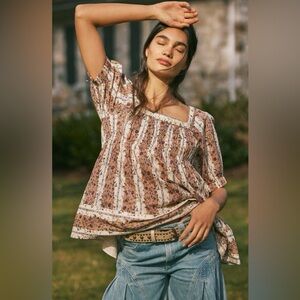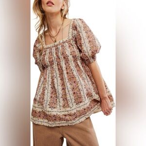 Free People Vintage Lover Cotton Top in Adobe Rose Combo - Size M