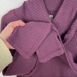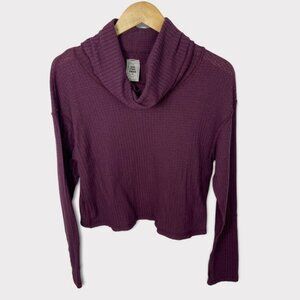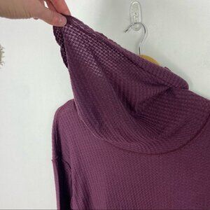 Free People Purple Waffle Knit Thermal Turtleneck in Women's Size XS. Long sleeves. Oversized cowl turtleneck. Poly, rayon and spandex Machine washable. Very good pre-loved condition. No visible flaws.