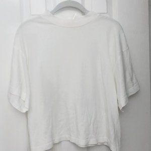 Slouchy short sleeve tee featuring a mock neck silhouette, in a soft washed fabric. Color: Painted White. Worn once.
