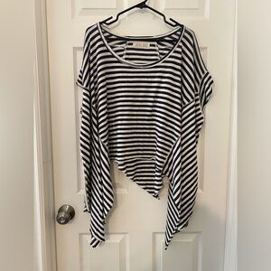 Free People We The Free Angel Striped Asymmetrical Tee Size Large