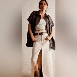 Free People We The Free Come As You Are Denim Maxi Skirt NWT Wisp Ivory Sz 4