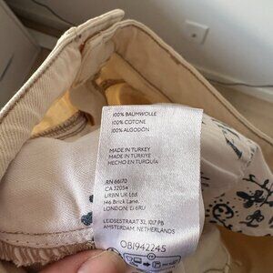 Features: Zip fly and button closure, four-pocket design, inverted yoke seam at front, raw-edge hem