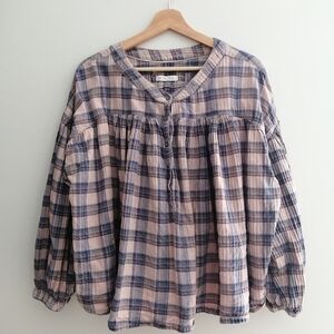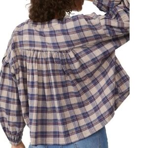 Free People We The Free Jessi Plaid Trapeze Top Balloon Sleeves