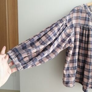 Free People We The Free Jessi Plaid Pleated Trapeze Top Balloon Sleeves Large
