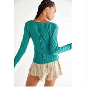 Free People We The Free Like A Boss Green Knit Top Sweater Raw Edge Small