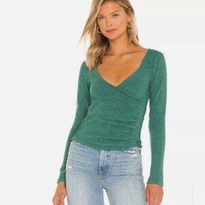 Free People We The Free Like A Boss Green Knit Top Sweater Cross Front Raw Edge ~ Size Small ~ 60% Cotton, 40% Polyester
