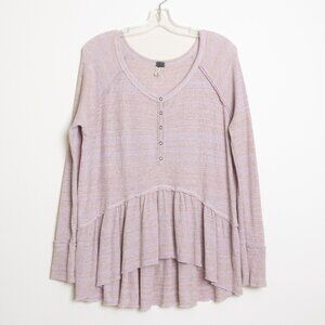 Free People We The Free Peplum Thermal Top Pink Lavender Long Sleeve Henley