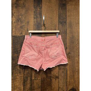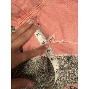 The product is a pair of Free People We The Free pink cut-off shorts in size 31. These shorts are designed for women and feature a regular fit. The pink color adds a fun and vibrant touch to any summer wardrobe, while the cut-off style gives them a trendy and casual look. Perfect for pairing with a tank top or shirt for a stylish and comfortable outfit.