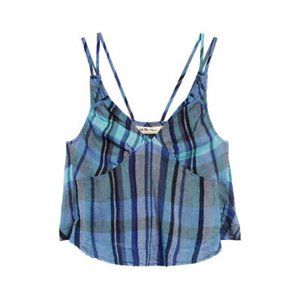 Free People We the Free Blue Plaid Cotton Cami Sleeveless Top Size Small