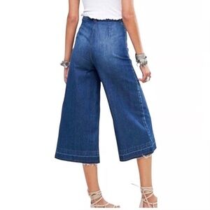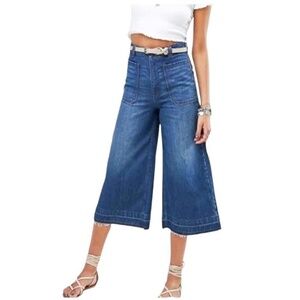Free People We the Free Wide Leg Jeans High Waisted Cropped Raw Hem