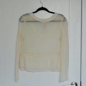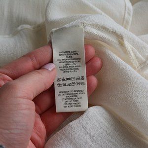 Excellent used condition with no flaws. Only worn once or twice. Size S but fits smaller so could fit an XS. 65% rayon, 35% modal. Slightly sheer (not lined), scoopneck, frill detailing at the front.