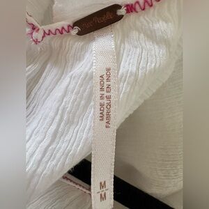 Chic white blouse with vibrant pink stitching. Lightweight and stylish.