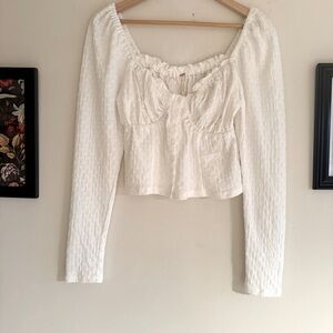 Free People White Eyelet Lady Bug Milk Maid Button Top Women's Size LG