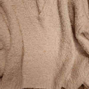 Free People White Fuzzy Sweater Oversized V Neck Size Medium