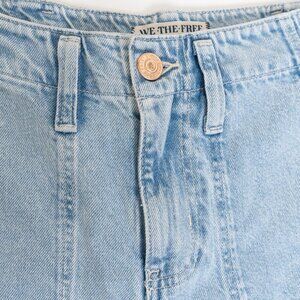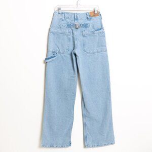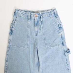Free People Wide Leg Jeans Carpenter Light Wash High Waist Relaxed Utility NEW