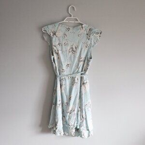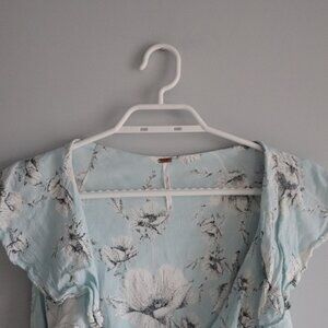 Free People Womens Blue Sz L French Quarter Mini Floral Wrap Sleeveless Dress
