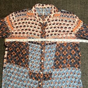 Free People Women’s Boho Patterned Shirt Button Down Crinkle Blouse sz S