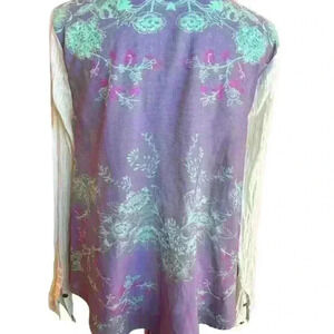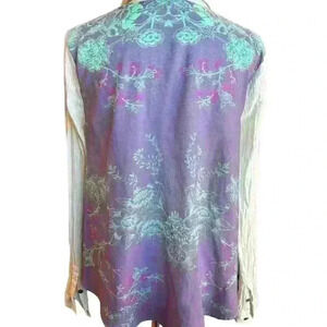 Free People Womens Button Down Long Sleeve Floral Back Shirt Multicolor Size S
