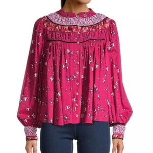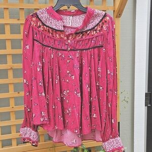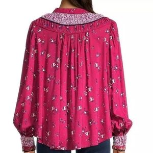 Free People Womens XS Oversized Paloma Printed Blouse Button Down Boho Hippie