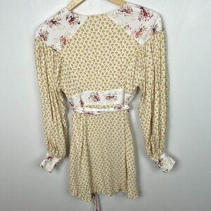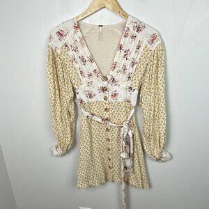 Free People Wonderland Mini Dress Button Down Tie Waist Floral Size XS Bohemian