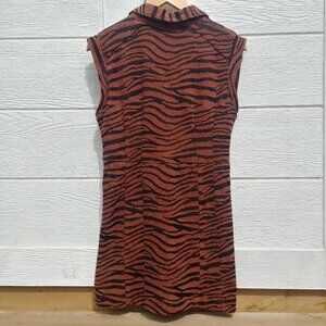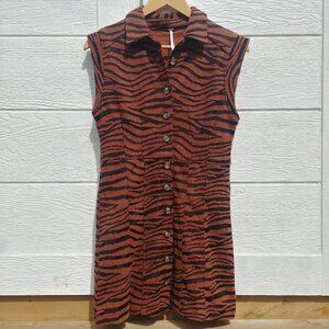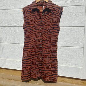 Very good used condition- I can find no flaws. This dress is very short - please see photos for measurements. The cotton fabric is very thick and sturdy. Functional buttons extend from the collar to the hem.