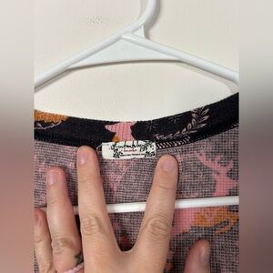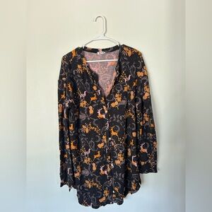 Free People black deer leaf llama button front waffle weave therma tunic M