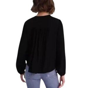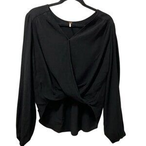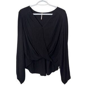 Free People black faux wrap hi-low pleated sleeve top size XS