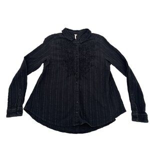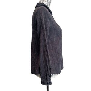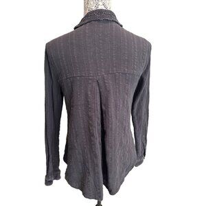 Free People dark Grey Long Sleeve Shirt Lace 100% cotton blouse collard sexy