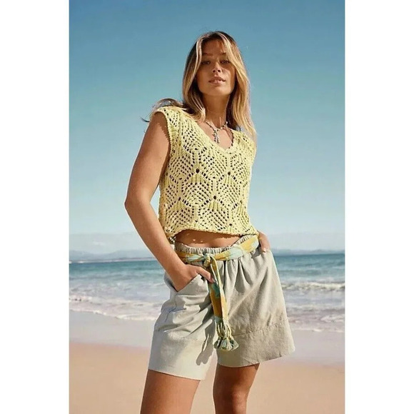 Free People free-est Alicia Fauxchet Top Green Open Knit Sweater Tank
