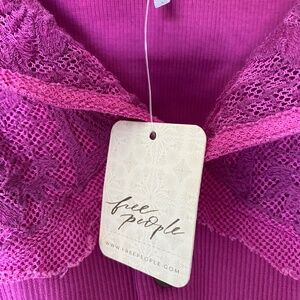 Size XL from free people. Very bright color with ripped lace (it’s not torn, it’s this way on purpose, very typical from free people).