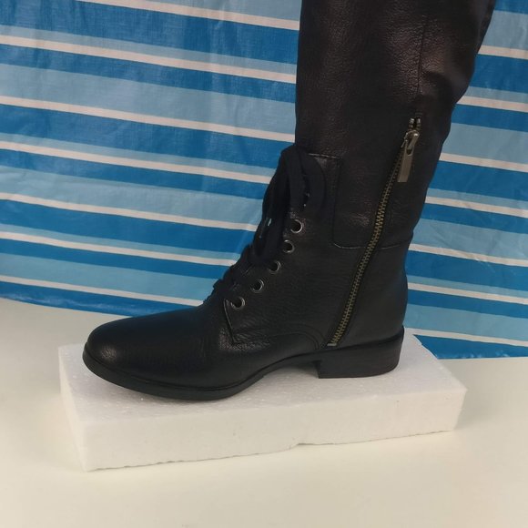 Free People mod Over-The-Knee TALL BLACK LEATHER EDWARDIAN BOOT 7.5US/5.5UK RaRe