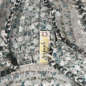 Size XS, a pretty feminine blouse from free people, the buttons on the cuff need minor repairs , one has a loose thread and the other one has a loop that needs to be sewn - see photos