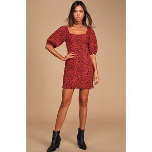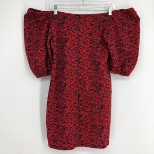 Free People red & blue metallic Sunset puff sleeve cold shoulder mini dress L