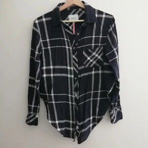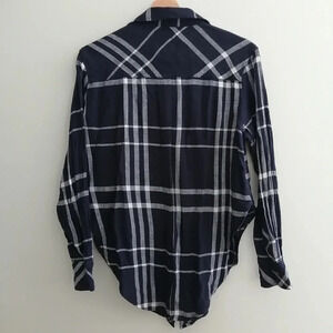 Free People x Rails Charli Linen Plaid Button Down in Navy Vanilla Small