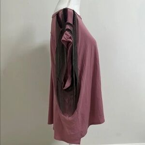 Free People x Tricia Fix Sleeves trimmed with black mesh and silver metal fringe