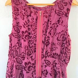 Free People Burgundy Metallic Velvet Burnout Flared Baby Doll Dress