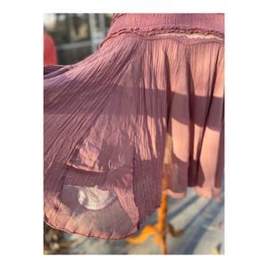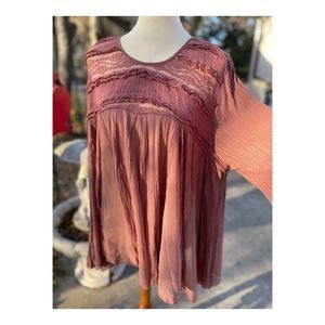 Free People Jojo Mixed Media Long Sleeve Lace Trim Top Size S NWT Dusty Rose